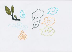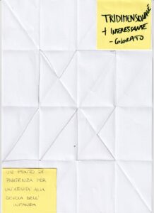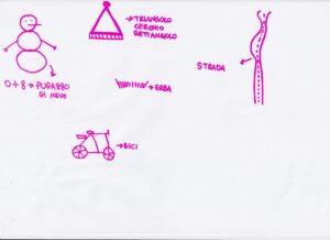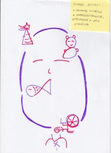 I partecipanti – 9 di cui 2 insegnanti in servizio, una della scuola dell’infanzia e una della scuola primaria, e 7 studentesse di Scienze della Formazione Primaria, alcune già con incarichi nella scuola – hanno prodotto le loro creazioni utilizzando, per nostra scelta, solo fogli bianchi formato A4 e matite o pennarelli.