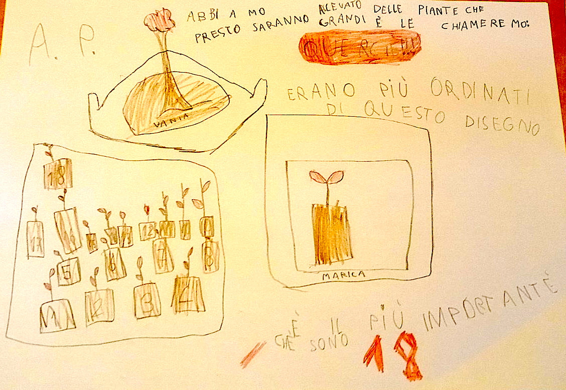 In questi giorni ho invece proposto una consegna individuale, quella di osservare i vasetti con le piantine di quercia, spuntate da qualche settimana.