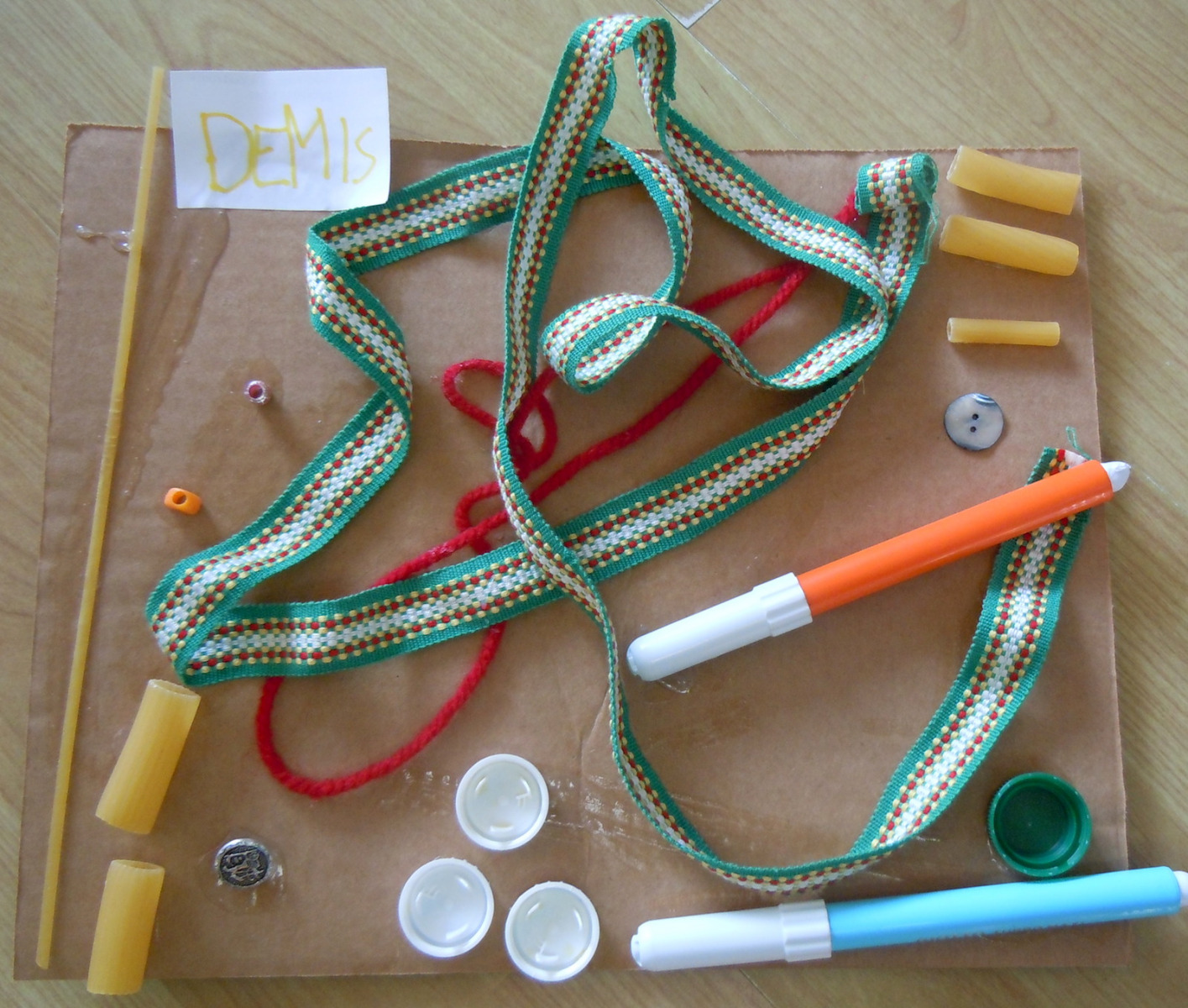 Dopo la conversazione su cosa era una creazione e cosa era una creazione matematica ho portato il materiale che i bambini hanno scelto e ho proposto una creazione.