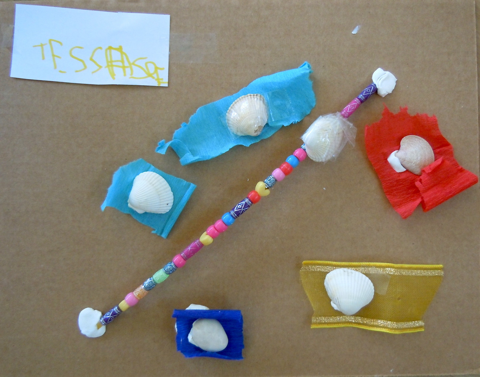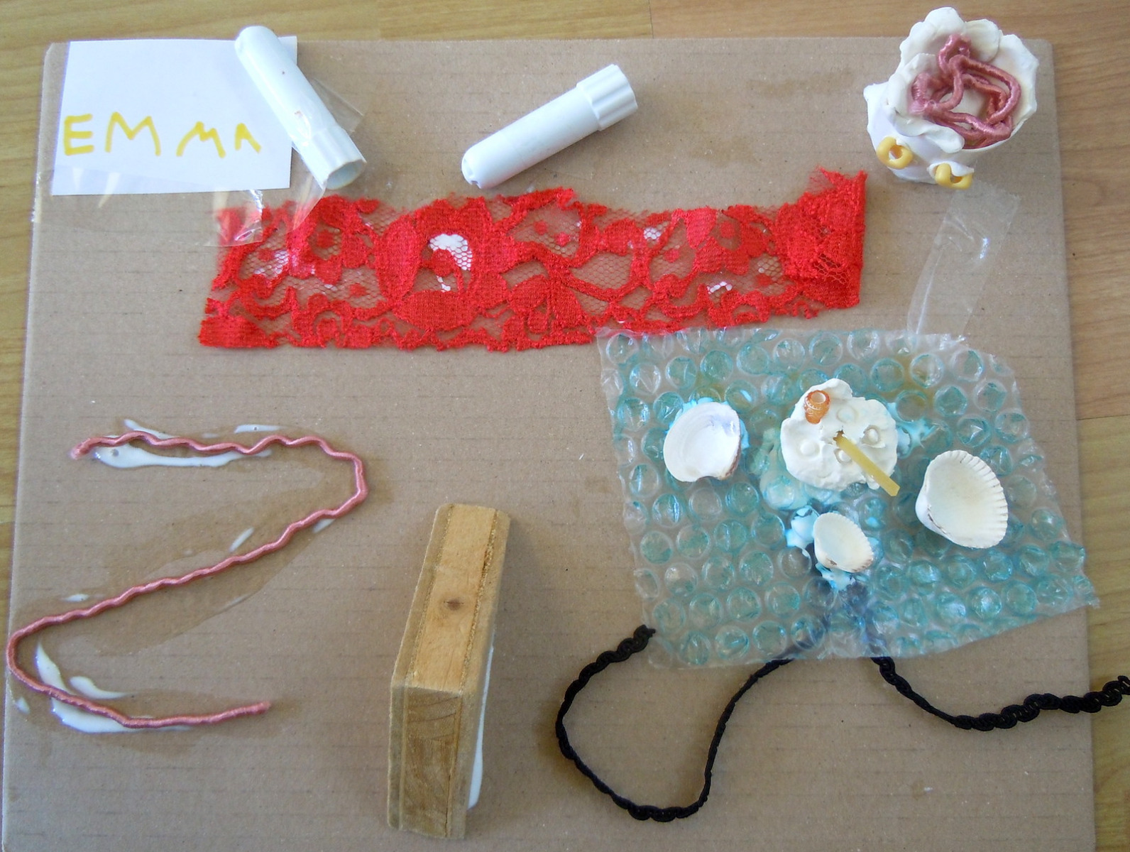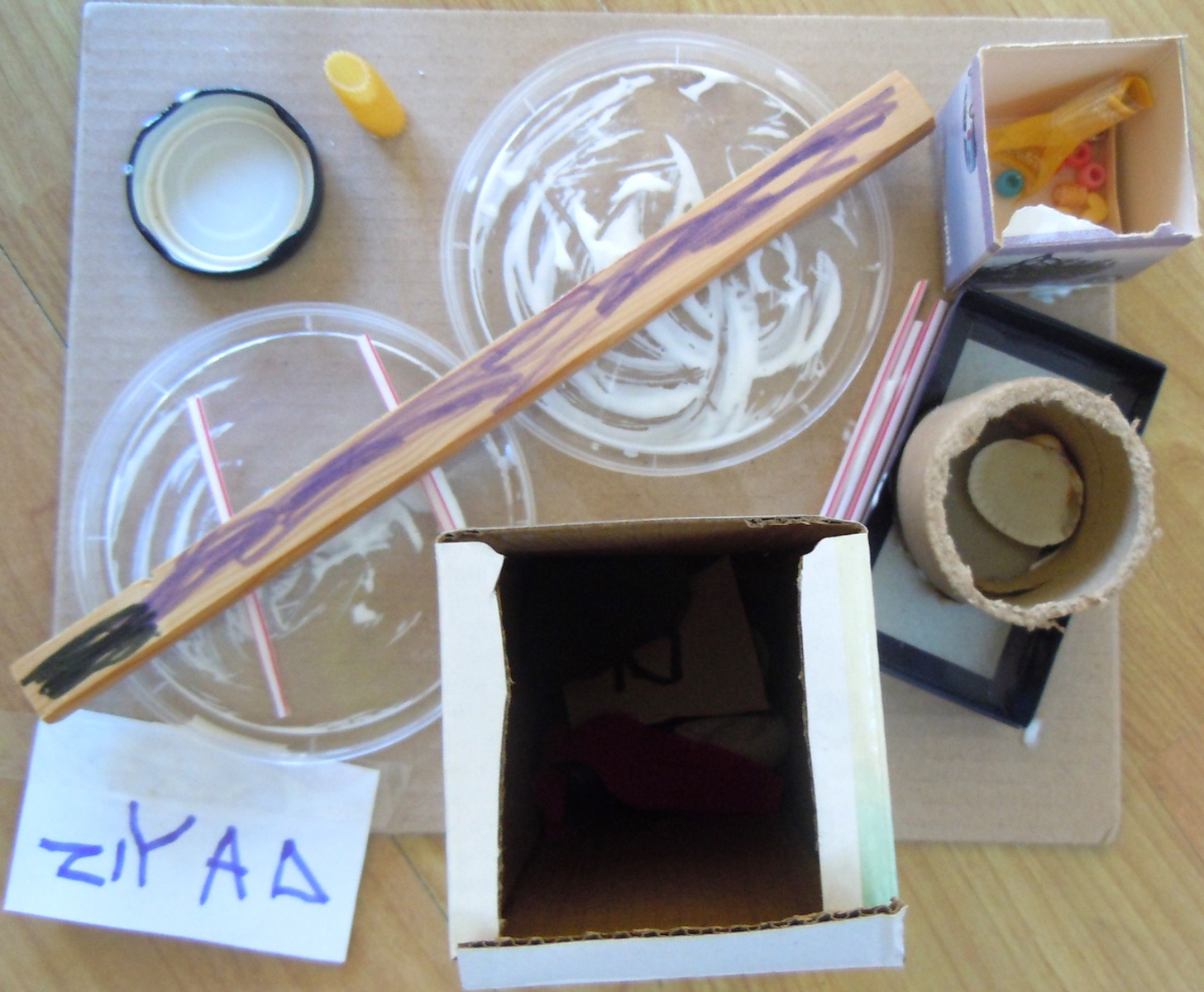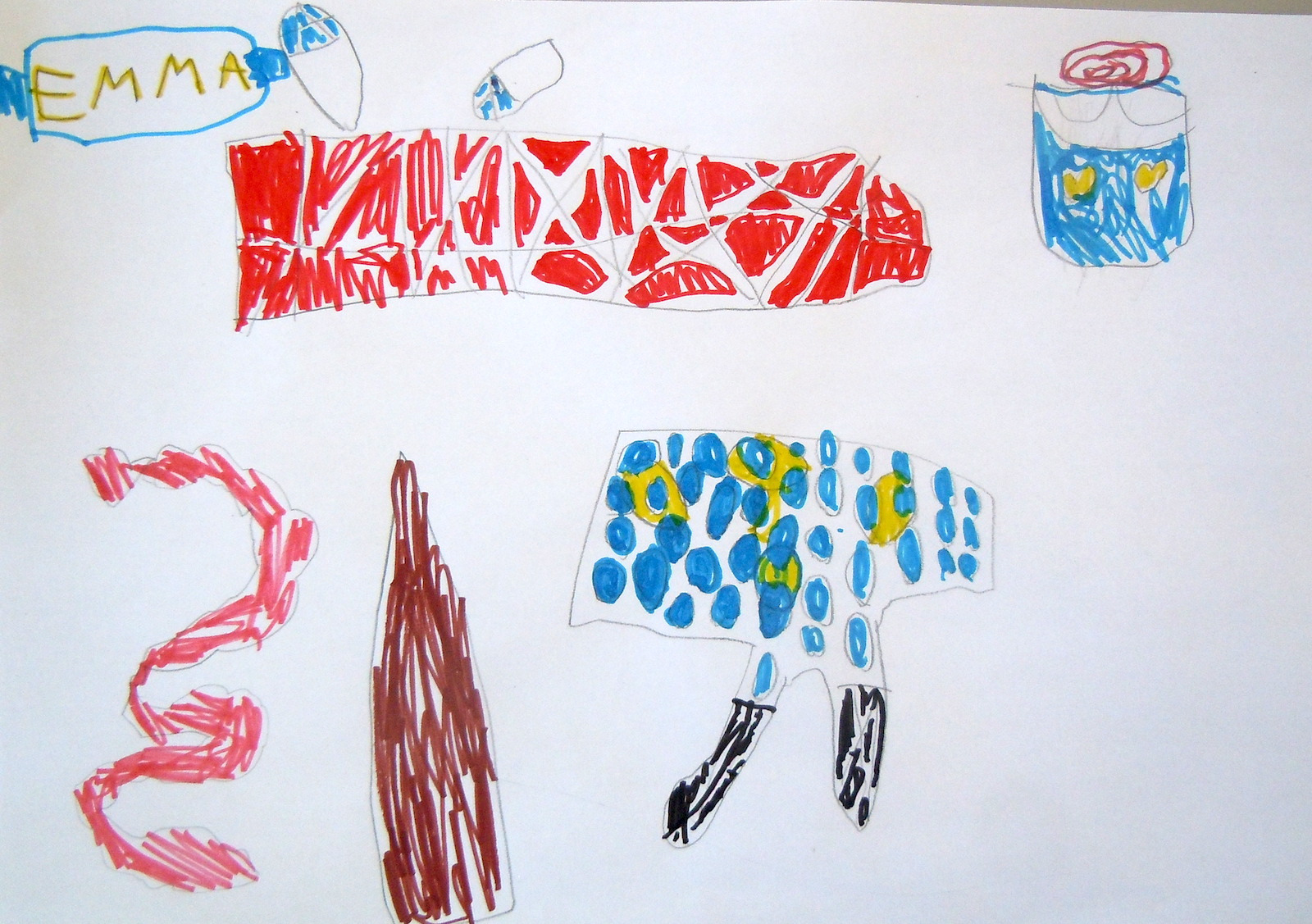 I bambini hanno poi disegnato la propria creazione dando un titolo, si nota l’attenzione di quasi tutti nel riportare forme, numero, disposizione e organizzazione del foglio degli oggetti utilizzati, ho notato come i bambini contavano prima di disegnarli sul foglio.