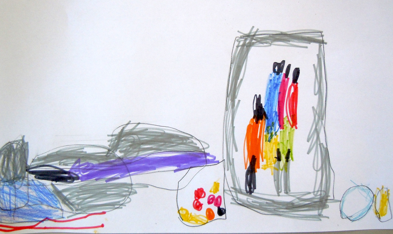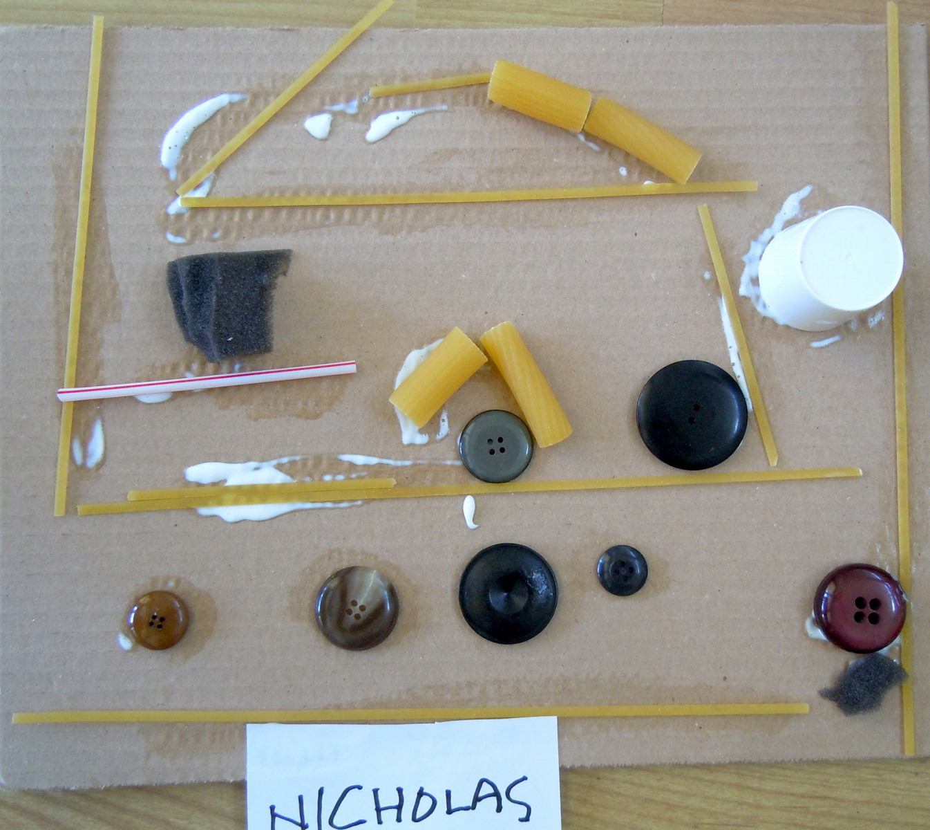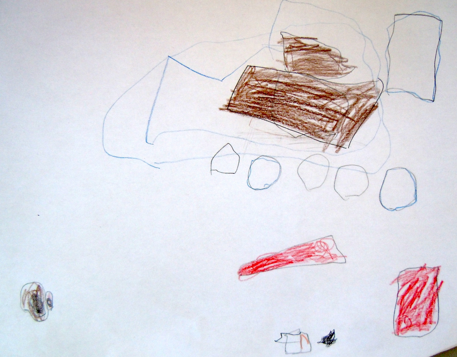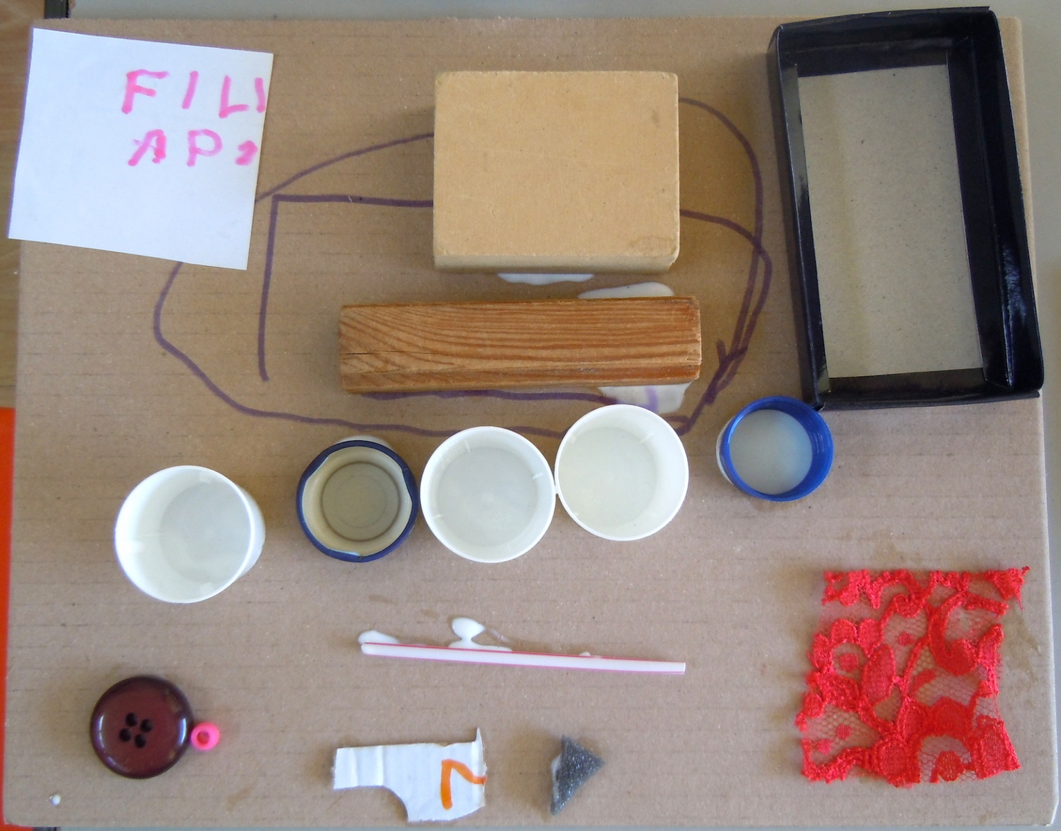 I bambini hanno poi disegnato la propria creazione dando un titolo, si nota l’attenzione di quasi tutti nel riportare forme, numero, disposizione e organizzazione del foglio degli oggetti utilizzati, ho notato come i bambini contavano prima di disegnarli sul foglio.