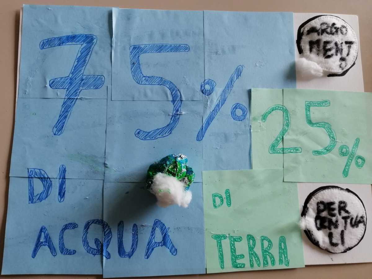 E: a me danno l’idea che il 75% si riferisce all’acqua perché i post-it sono blu, invece il 25% si riferisce alla terra perché sono di colore verde