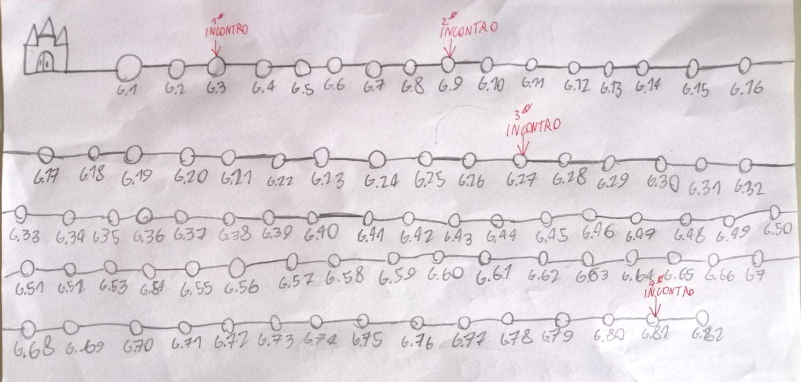 R: poi anche noi abbiamo usato le gommine con l’altro gruppo e abbiamo capito meglio. Poi qui abbiamo scritto che il terzo incontro è dopo 28 giorni ma perché ci siamo sbagliati perché le tappe poi erano troppo attaccate