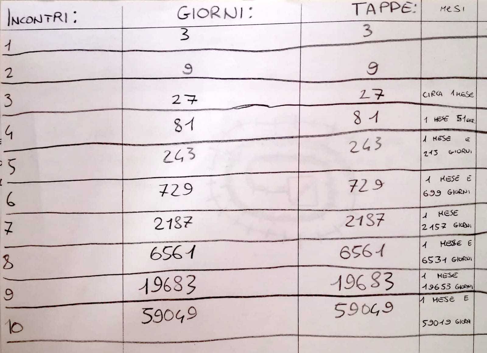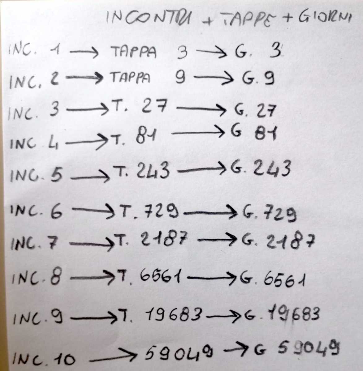 Ins: ok ma contando i chilometri fatti in totale alla fine di ogni giorno dai due personaggi, come avete fatto a capire che si incontravano proprio il 3° il 9° e il 27° giorno e non ad esempio il 2° il 7° e il 20°?